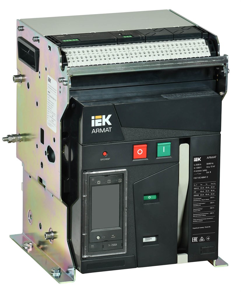 Воздушные автоматические выключатели (ACB) серии ARMAT предназначены для защиты сетей электроснабжения при коротких замыканиях и перегрузке, также предназначены для оперативных включений и выключений участков электрических цепей и рассчитаны для применения в электроустановках с номинальным рабочим напряжением до 690 В на номинальные токи от 630 до 6300А. Данные автоматические выключатели комплектуются электронными расцепителями, с различными комбинациями набора функциональных возможностей, в том числе возможностью коммуникации по протоколу Modbus, что, с учётом отключающей способности до 150 кА, позволяет применение ACB ARMAT на любых типах промышленных и гражданских объектов. Соответствуют ГОСТ Р 50030.2.