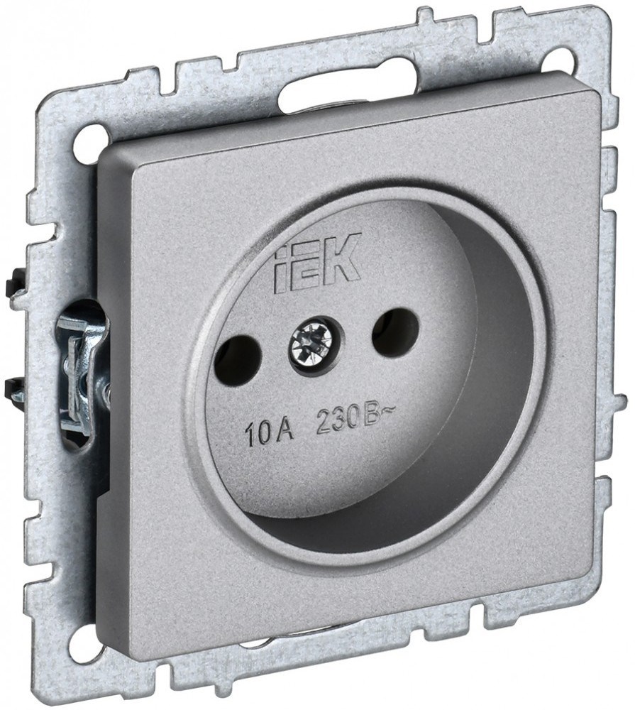 IEK Brite Base алюминий розетка 1-м без заземления, без защитных створок 10А BR-R10-10-K47