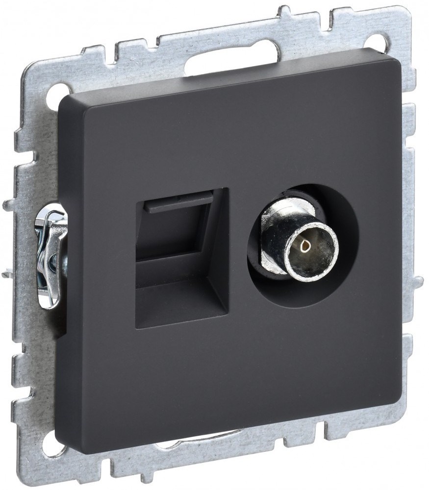 IEK Brite Base графит розетка двойная TV+RJ45 кат.5E BR-AK20-1-K53