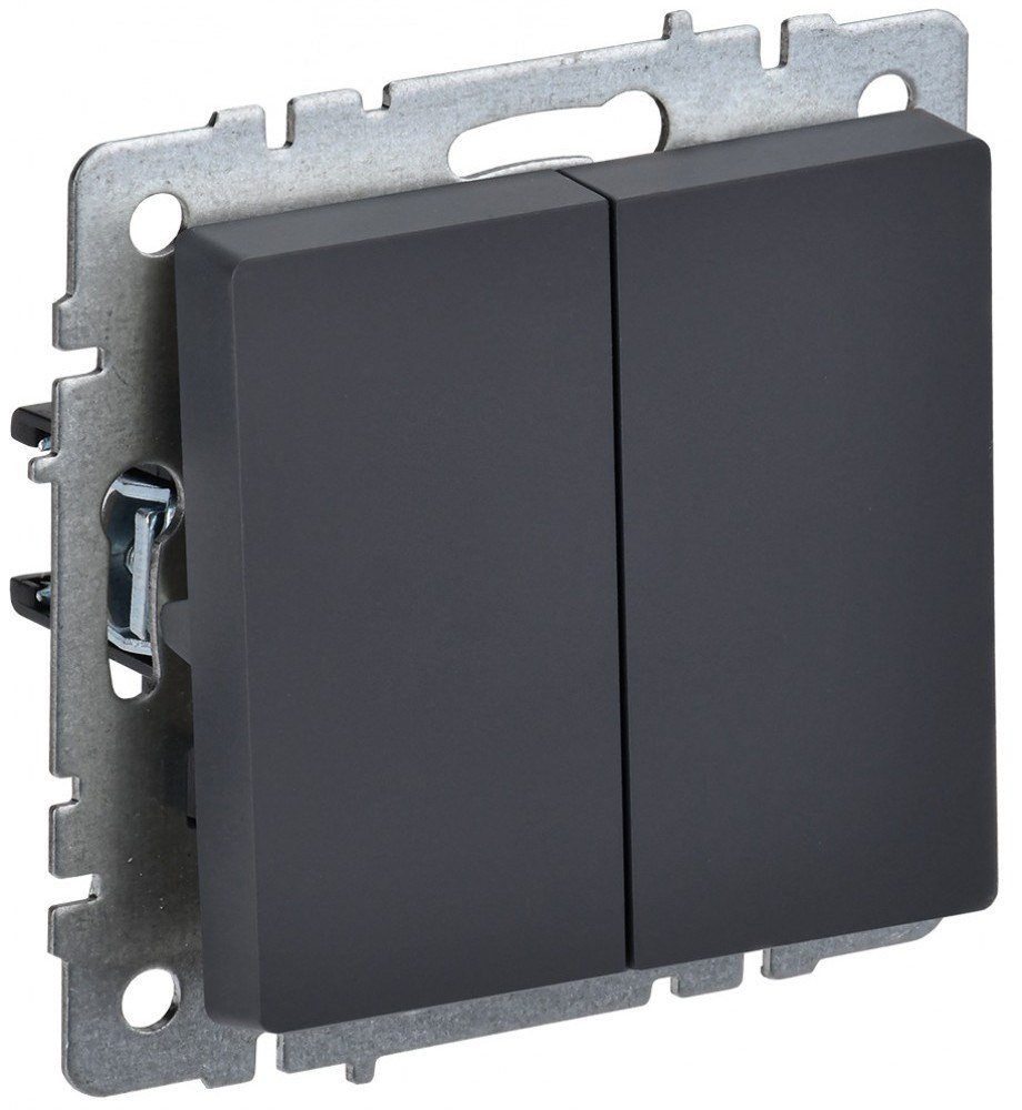 IEK Brite Base графит выключатель 2- клавишный проходной. 10А BR-V22-0-10-K53