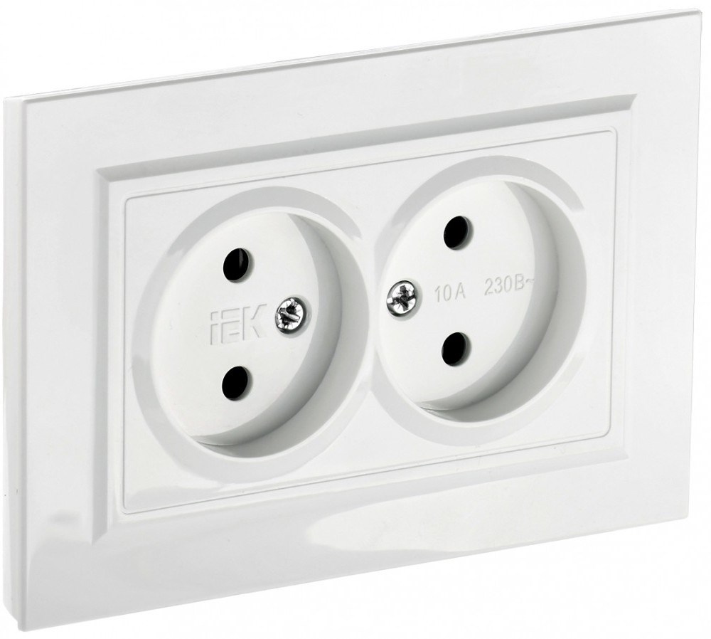 IEK Brite белый розетка 2-места без заземления, без защитных створок 10А в сборе BR-R20-10-K01-F