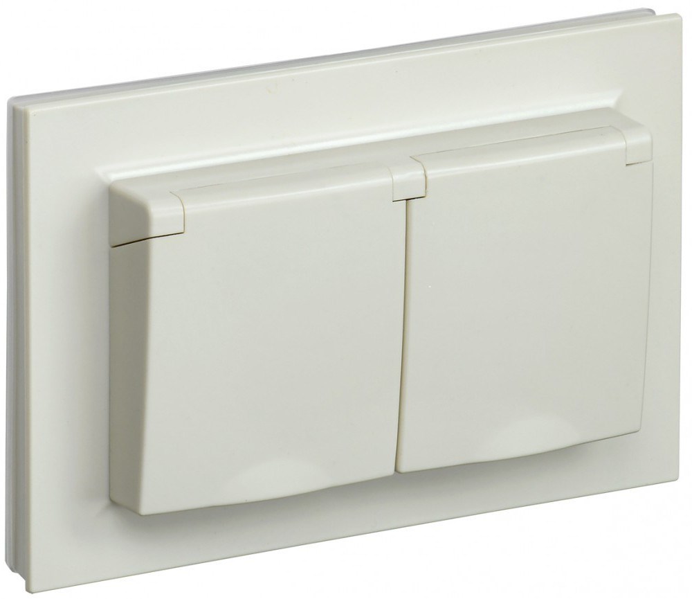 IEK Brite бежевый розетка 2 места, с заземлением, шторками и крышкой, 16А в сборе IP44 BR-R26-16-44-K10-F