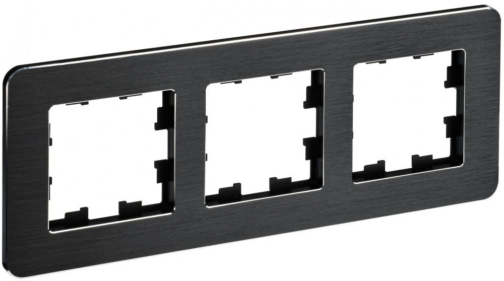 IEK Brite Decor чёрный / алюминий металл скруглённые углы рамка 3 места BR-M32-M-21-K02