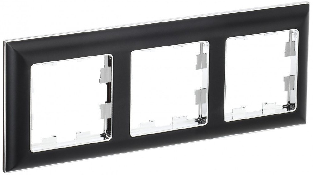 IEK Brite Decor чёрный / хром 3D-форма рамка 3-местная BR-M32-12-2-K23