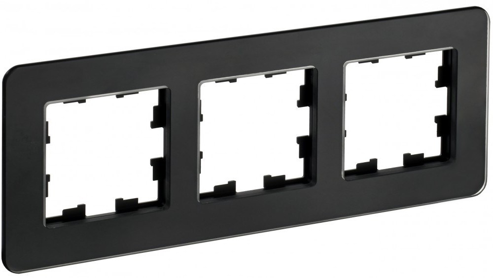 IEK Brite Decor чёрный матовый стекло скруглённые углы рамка 3-местная BR-M32-G-41-K02