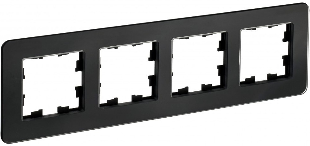 IEK Brite Decor чёрный матовый стекло скруглённые углы рамка 4 места BR-M42-G-41-K02