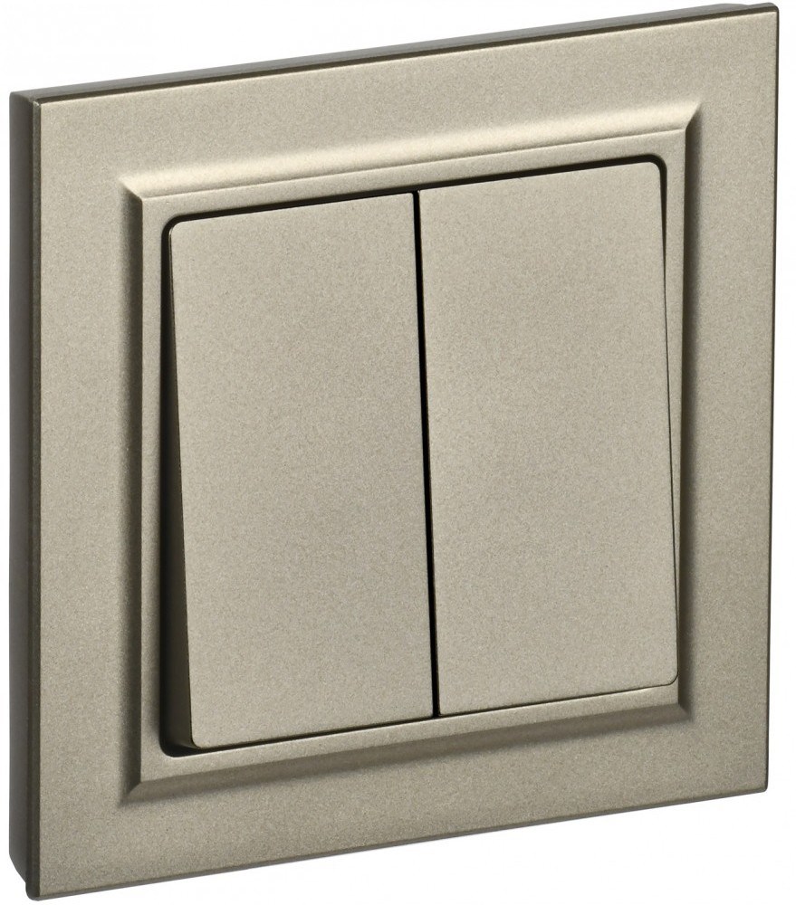 IEK Brite шампань выключатель 2- клавишный 10А в сборе BR-V20-0-10-K37-F
