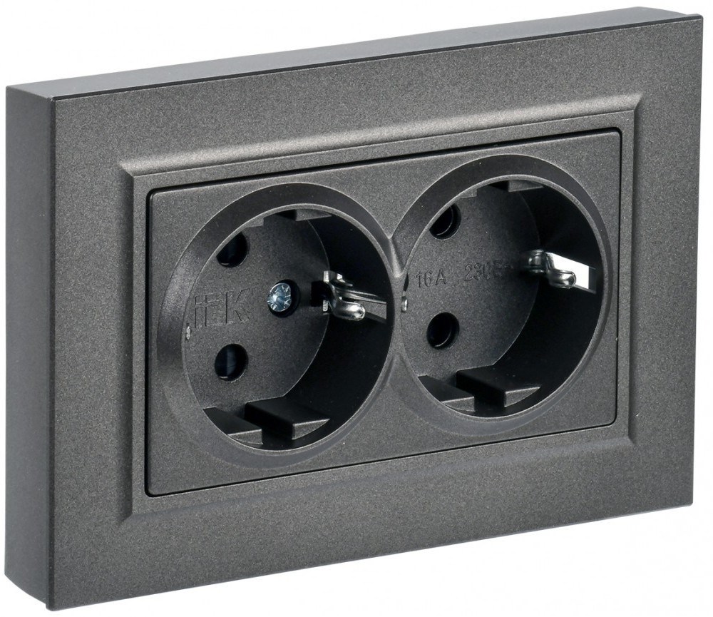 IEK Brite тёмная бронза розетка 2-места с заземлением, с защитными шторками 16А в сборе BR-R24-16-K45-F