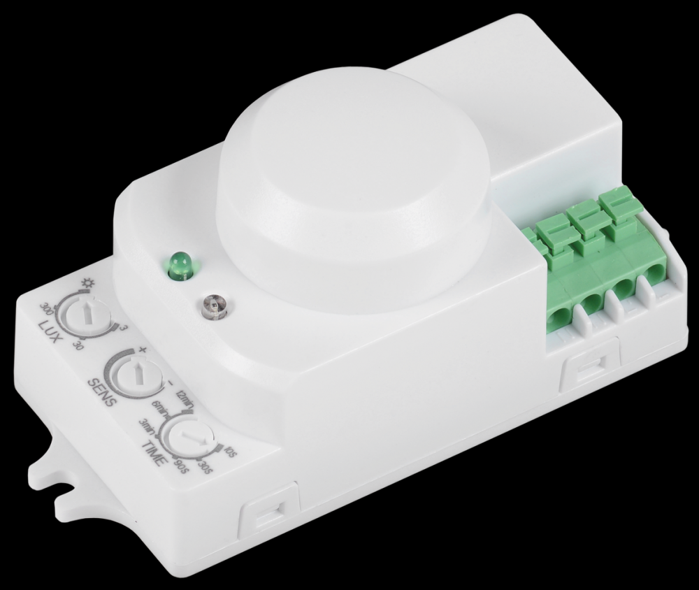 Микроволновый датчик движения излучает высокочастотные электромагнитные волны (частота волн обычно она составляет 5,8ГГц), которые отражаются от окружающих объектов и регистрируются сенсором. В случае обнаружения малейших изменений электромагнитных волн, микропроцессор датчика приводит в действие заданные настройки. Назначение: - для автоматического включения и отключения нагрузки в заданном интервале времени при появлении движущихся объектов в зоне обнаружения датчика. Применение: - управление уличным освещением; - управление внутренним освещением; - управление устройствами сигнализации.