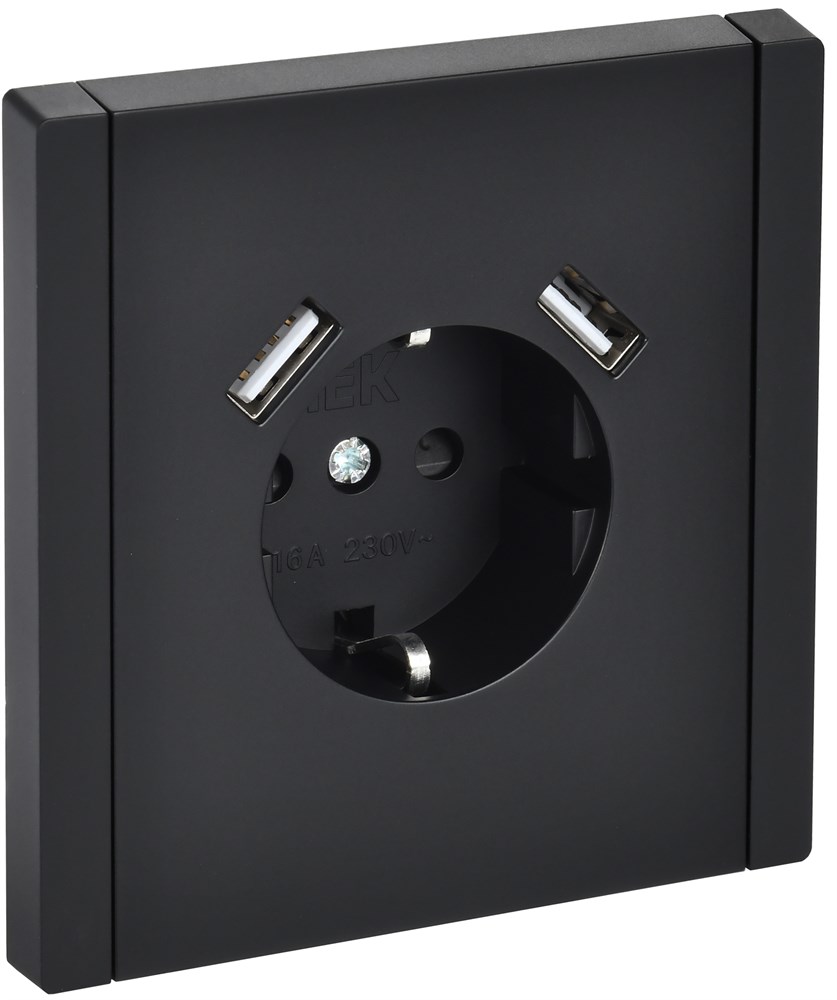 IEK FORTE&PIANO Черный Розетка с/з со шт винтовое крепление 16А USB A+A 3,1А FP145 FP-R14-16-U21-D31-K02