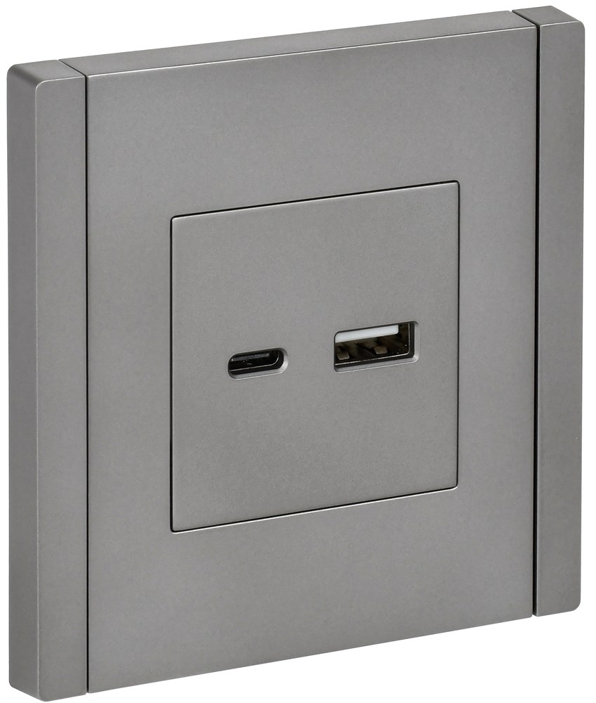 IEK FORTE&PIANO Сталь Розетка USB A+C 18Вт FP551 FP-U22-018-K46