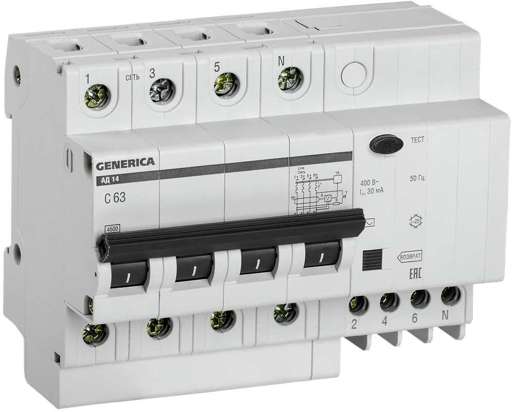 IEK GENERICA Диф. автомат АД14 4Р 63А 30мА MAD15-4-063-C-030