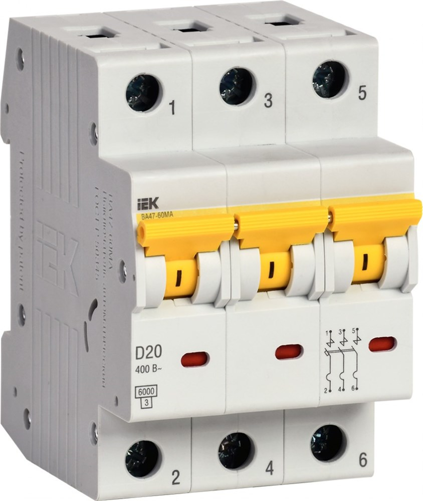 IEK KARAT Автоматический выключатель ВА47-60МА без тепл. расцеп. 3P 20А 6кА D MVA33-3-020-D