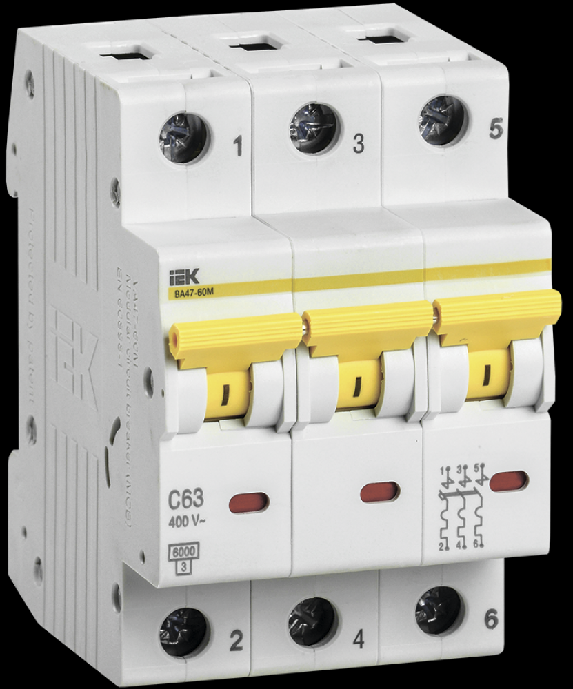 IEK KARAT Выключатель автоматический ВА47-60M 3Р 63А 6кА B MVA31-3-063-B