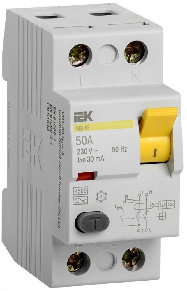 Дифференциальный выключатель ВД 1-63 тип А без встроенной защиты от сверхтоков реагирует не только на синусоидальные переменные дифференциальные токи, но и на пульсирующие постоянные дифференциальные токи. Источником пульсирующего тока являются, например, стиральные машины с регуляторами скорости, регулируемые источники света, телевизоры, видеомагнитофоны, персональные компьютеры и др. Дифференциальный выключатель ВД 1-63 тип А соответствует требованиям ГОСТ 50326 и ГОСТ 50807 как дифференциальный выключатель, "функционально не зависящий от источника питания". Дифференциальный выключатель ВД 1-63 тип А предназначен для защиты человека от поражения электрическим током при случайном непреднамеренном прикосновении к токоведущим частям электроустановок в сетях переменного тока напряжением 230/400 В и частотой 50 Гц. Дифференциальный выключатель ВД 1-63 тип А выпускается в 2-х и 4-х полюсном исполнении на номинальные токи 16А, 25А, 32А, 40А, 50А, 63А и номинальные отключающие дифференциальные токи 10мА, 30мА, 100мА.