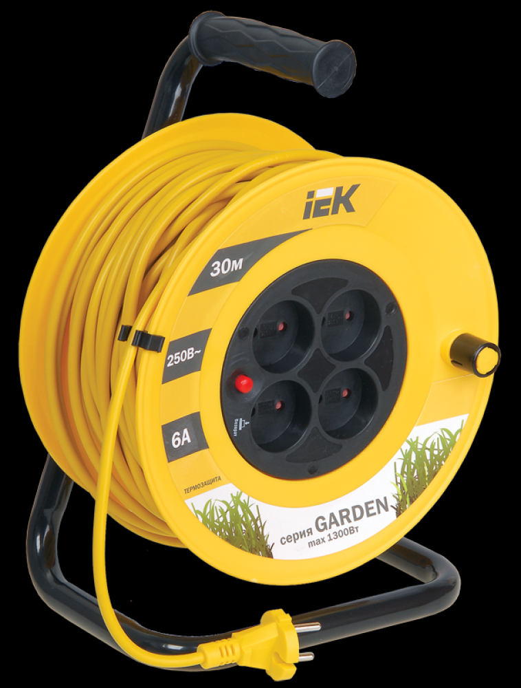 Удлинитель на катушке позволяет легко подключить удаленное от стационарной розетки электрооборудование. Незаменим на садовом участке, в парках с аттракционами, в промышленности и в быту.