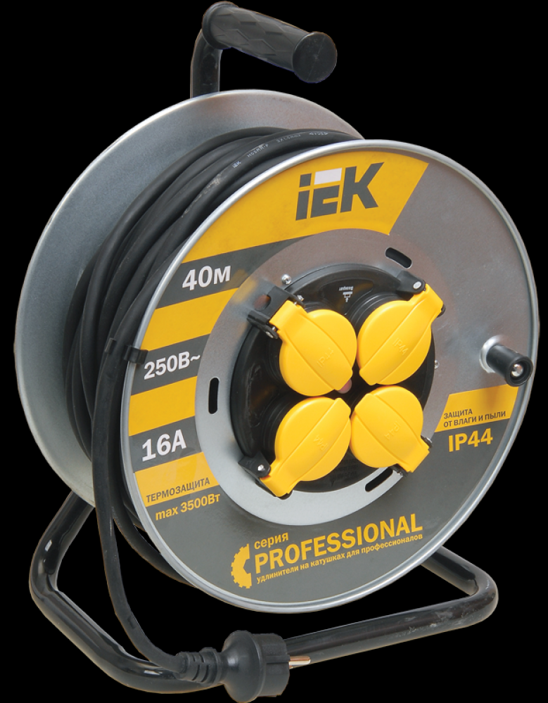 IEK Катушка УК40 на мет с т/з 4 места 2Р+PЕ/40м КГ 3х2,5мм2 IP44 "Professional" WKP17-16-04-40-44