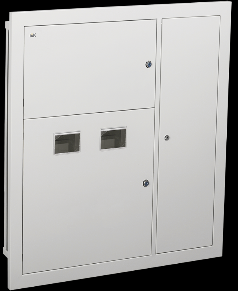 Используется для сборки этажного распределительного щита на 2 квартиры, предназначенного для приема и распределения электроэнергии в жилых и общественных зданиях, а также для защиты отходящих линий при перегрузках и коротких замыканиях. Сварной металлический корпус состоит из трех отсеков: вводно-учетного, распределительного, отсека слаботочного оборудования. В вводно-учетном и распределительном отсеках размещены DIN-рейки для крепления счетчиков (по количеству квартир). В распределительном отсеке установлены DIN-рейки для аппаратов групповых линий и рейка для установки шин N и РЕ. Отсек укомплектован оперативной панелью. Отсек слаботочного оборудования снабжен перфорированными профилями для прокладки теле- и радиосетей, телефонных линий, сетей охранной сигнализации, домофонов и т.п. Для обеспечения пожарной безопасности между слаботочным и силовым отсеками расположена разделительная перегородка.