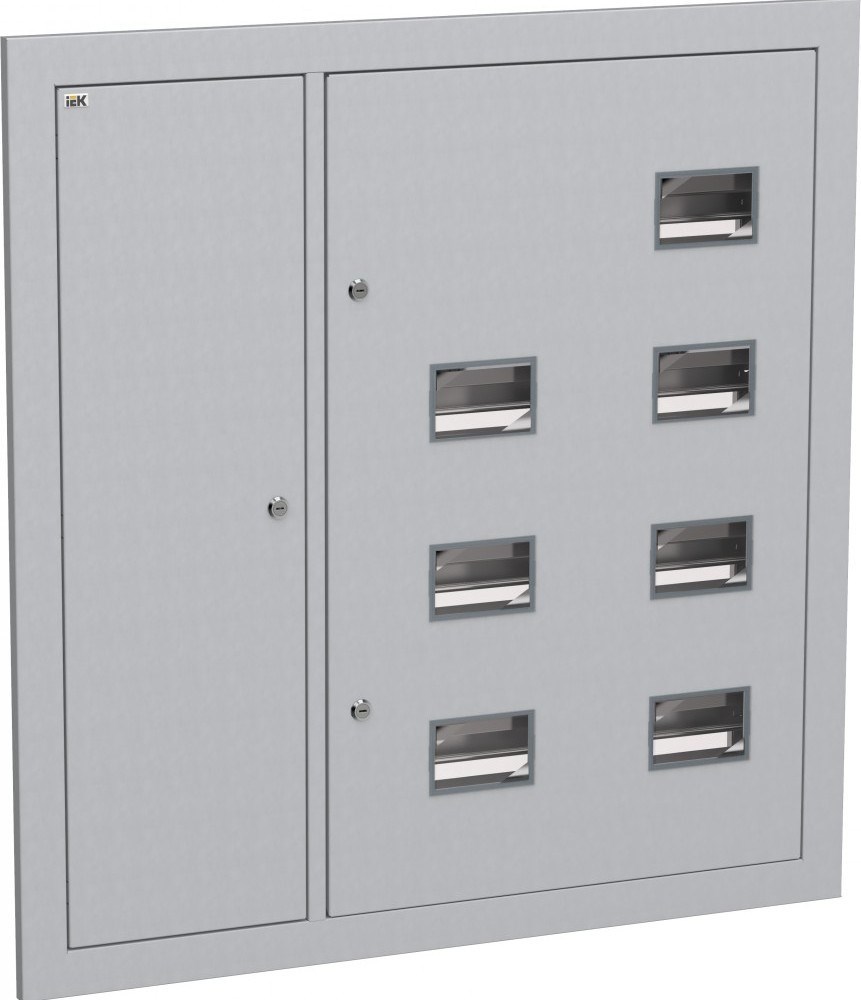 Используется для сборки этажного распределительного щита на 7 квартир, предназначенного для приема и распределения электроэнергии в жилых и общественных зданиях, а также для защиты отходящих линий при перегрузках и коротких замыканиях. Сварной металлический корпус состоит из двух отсеков: вводно-учетный и распределительный объединены в один, второй – отсек слаботочного оборудования (расположен слева). В вводно-учетном, распределительном отсеках размещены DIN-рейки для крепления счетчиков (по количеству квартир), аппаратов групповых линий и рейка для установки шин N и РЕ. Отсек укомплектован оперативной панелью. Отсек слаботочного оборудования снабжен перфорированными профилями для прокладки теле- и радиосетей, телефонных линий, сетей охранной сигнализации, домофонов и т.п. Для обеспечения пожарной безопасности между слаботочным и силовым отсеками расположена разделительная перегородка.