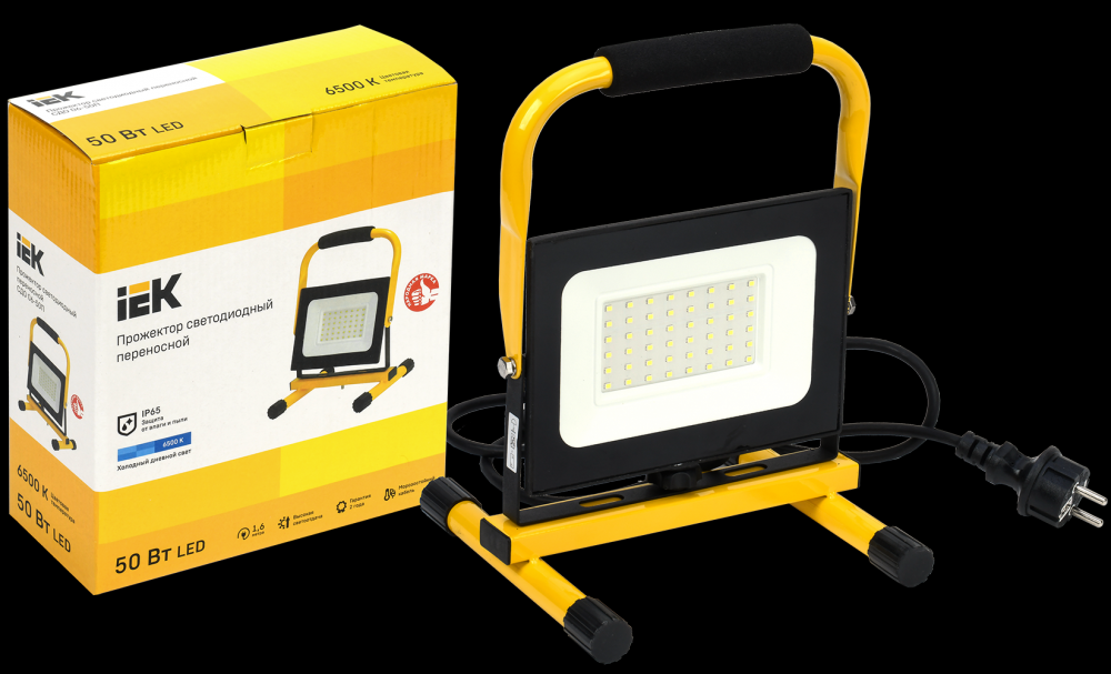 IEK Прожектор LED СДО 06-50П переносной 6500К IP65 черный LPDO603-050-65-K02