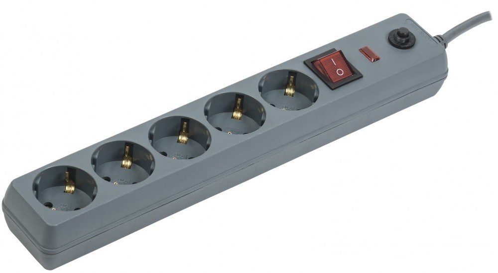 IEK Сетевой фильтр СФ-05К-выкл. 16А 5 мест 5м 3х1мм2 серый WFP10-16-05-05-ZK-K03