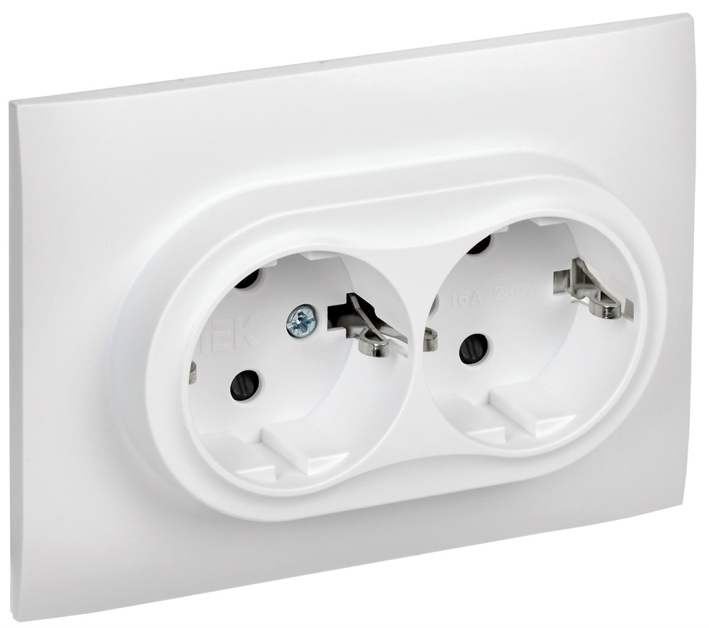 IEK SKANDY Арктический белый Розетка 2-ая с/з с защитными шторками 16А в сборе SK-R07W SK-R24-16-K01-F