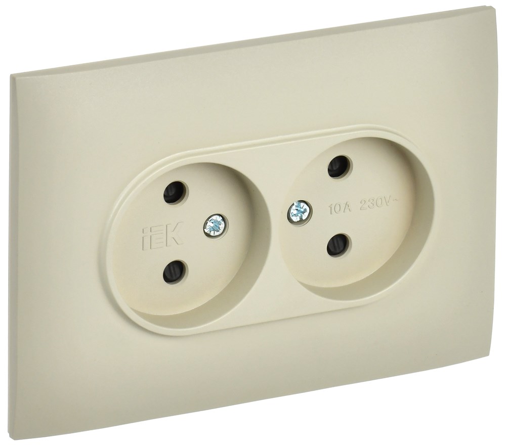IEK SKANDY Бежевый Розетка 2-ая б/з с защитными шторками 10А в сборе SK-R09B SK-R23-10-K10-F