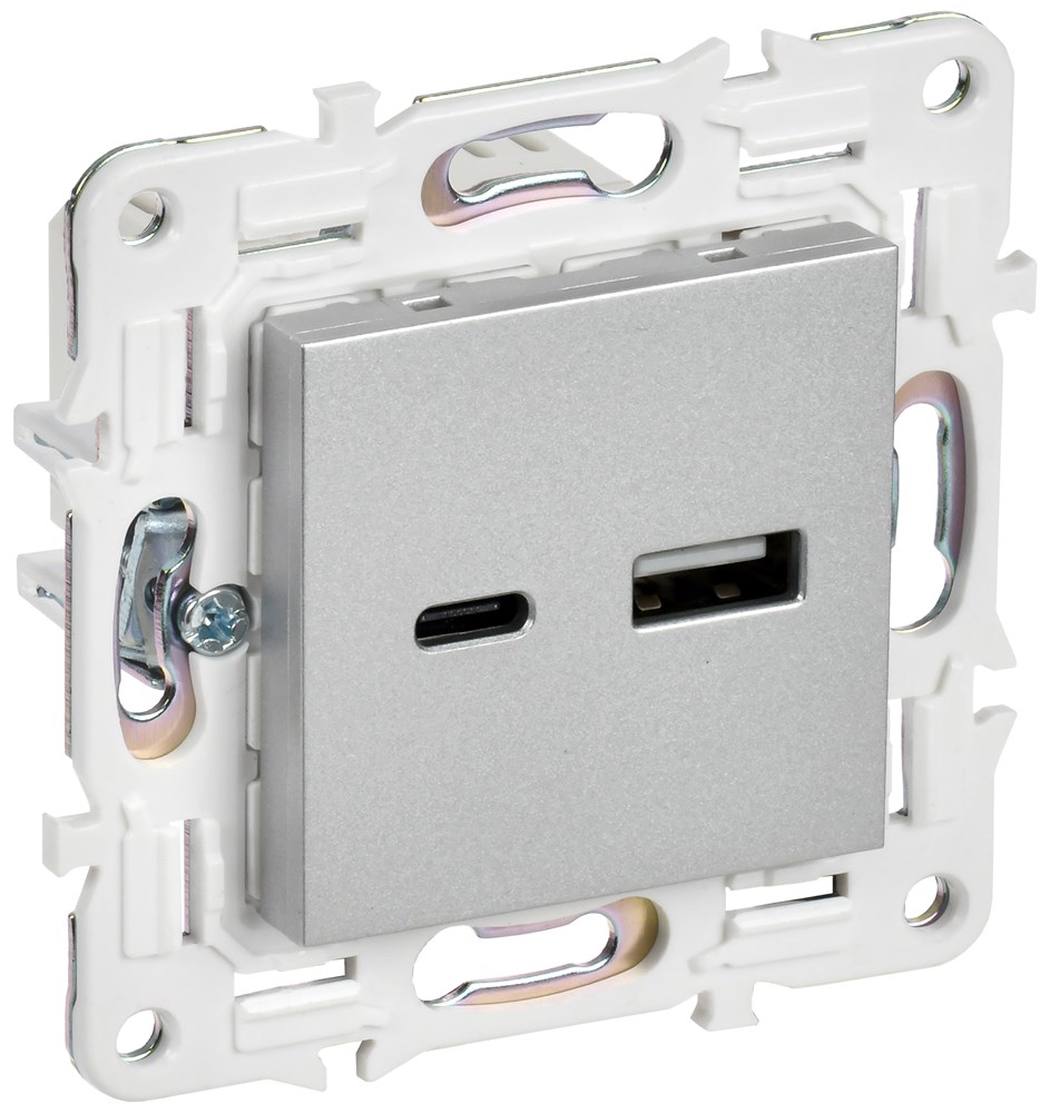 IEK SKANDY Серебряный Розетка USB A+A 3,1А SK-R15S SK-U21-D31-K23