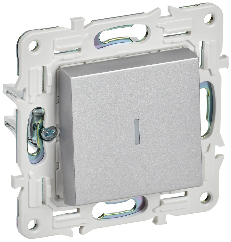 IEK SKANDY Серебряный Выключатель 1-клавишный проходной с индикацией 10А SK-V08S SK-V12-1-10-K23