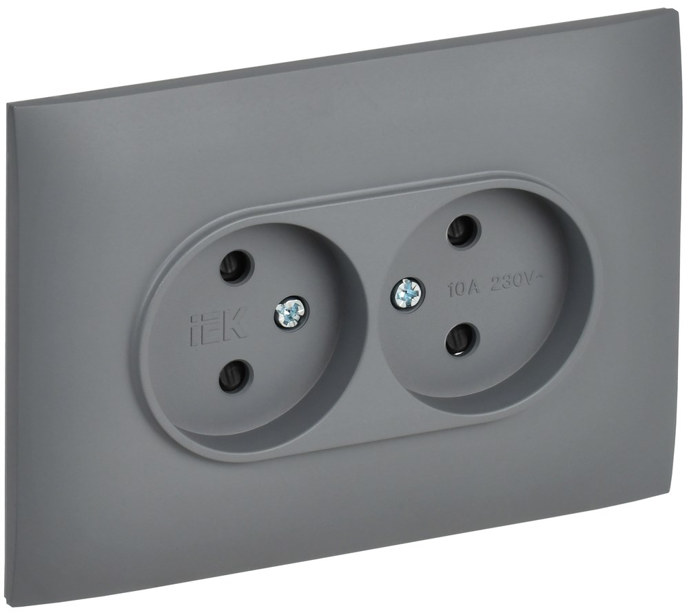 IEK SKANDY Серый Розетка 2-ая б/з с защитными шторками 10А в сборе SK-R09Gr SK-R23-10-K03-F
