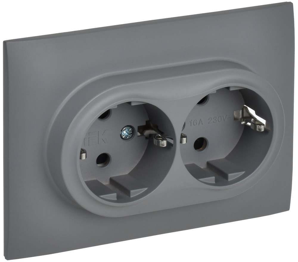 IEK SKANDY Серый Розетка 2-ая с/з с защитными шторками 16А в сборе SK-R07Gr SK-R24-16-K03-F