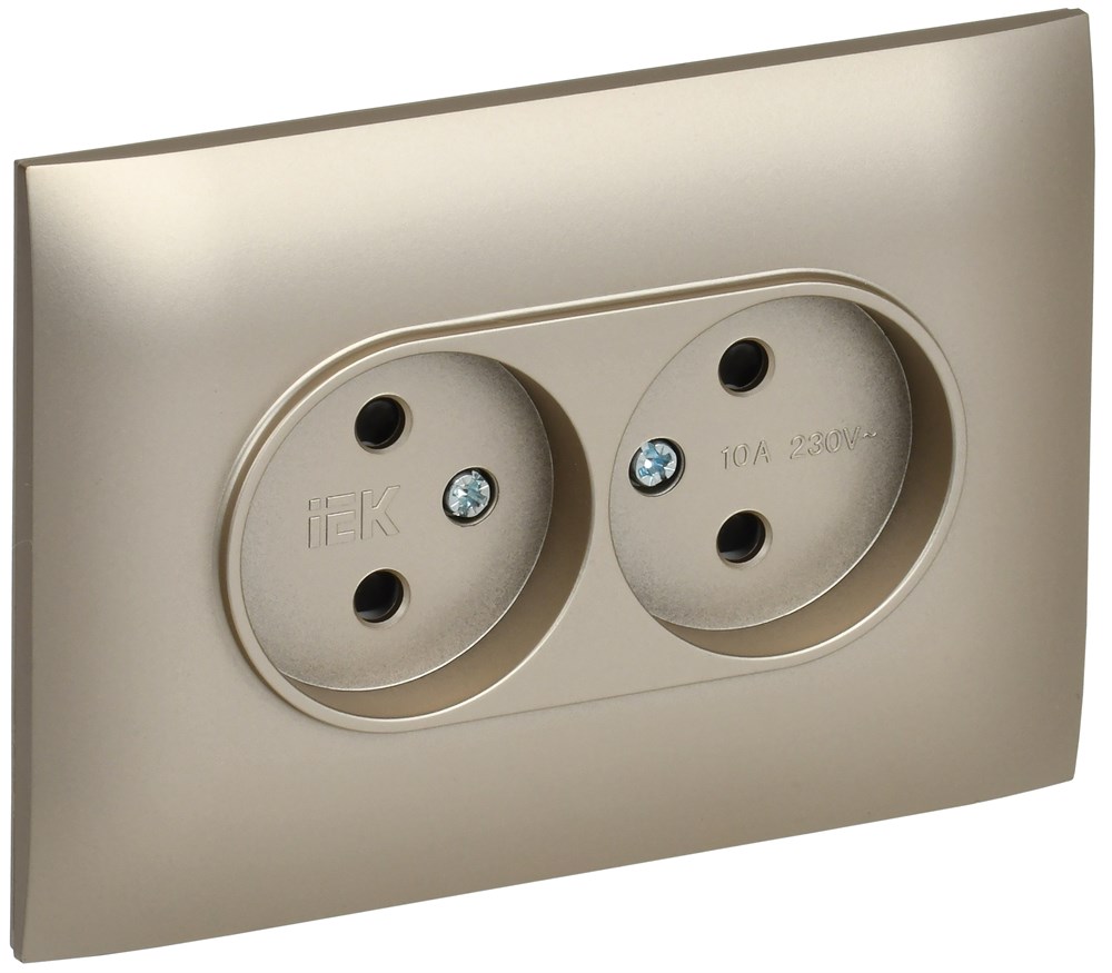 IEK SKANDY Шампань Розетка 2-ая б/з с защитными шторками 10А в сборе SK-R09Sh SK-R23-10-K37-F