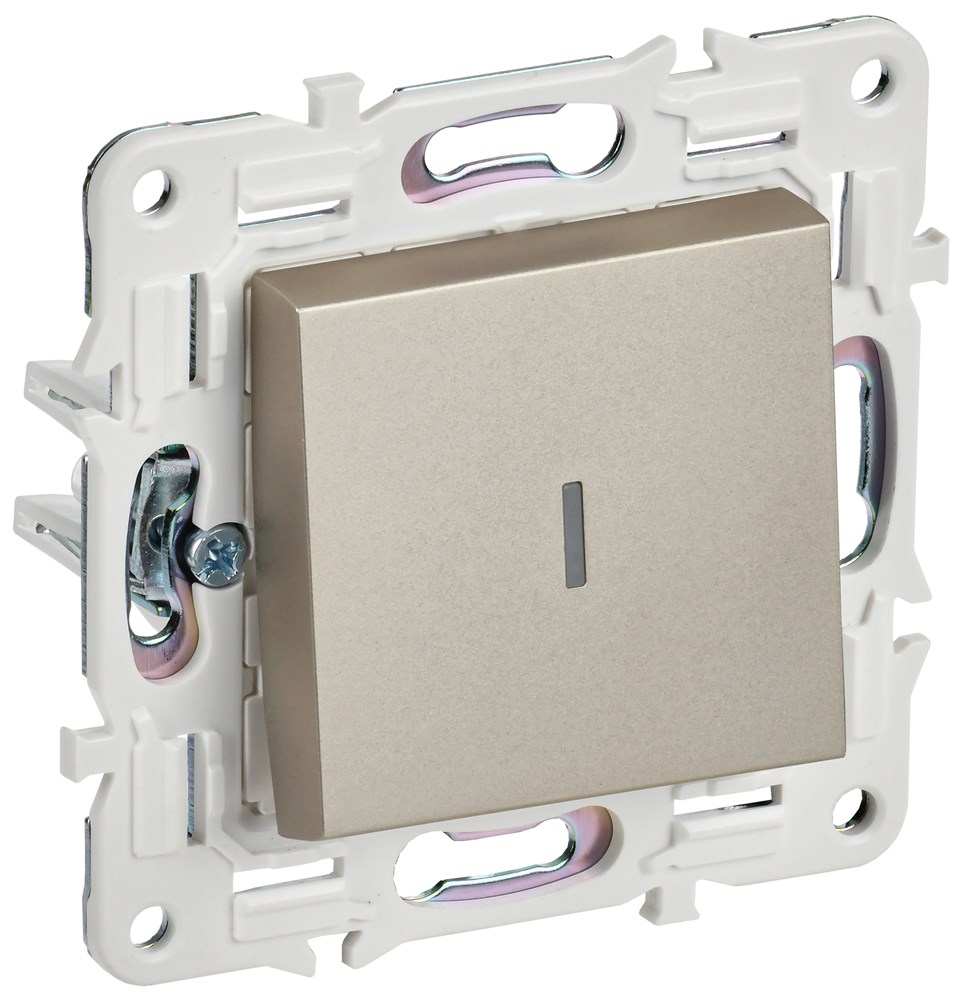 IEK SKANDY Шампань Выключатель 1-клавишный проходной с индикацией 10А SK-V08Sh SK-V12-1-10-K37