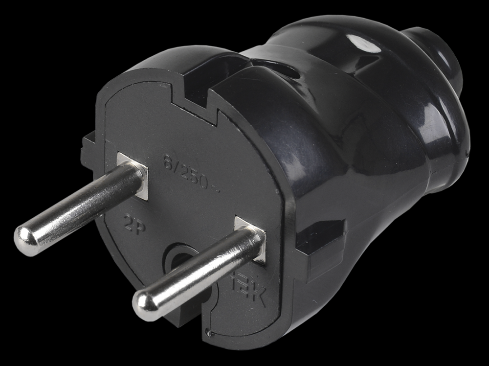 IEK ВПп20-02-Ст Вилка разборная прямая без з/к 6А черная EVP20-06-01-K02