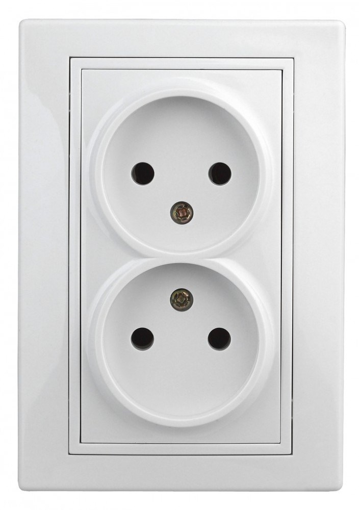 Intro 1-204-01 Розетка 2х2P, 16А-250В, IP20, СУ, Plano, Белый Б0027613