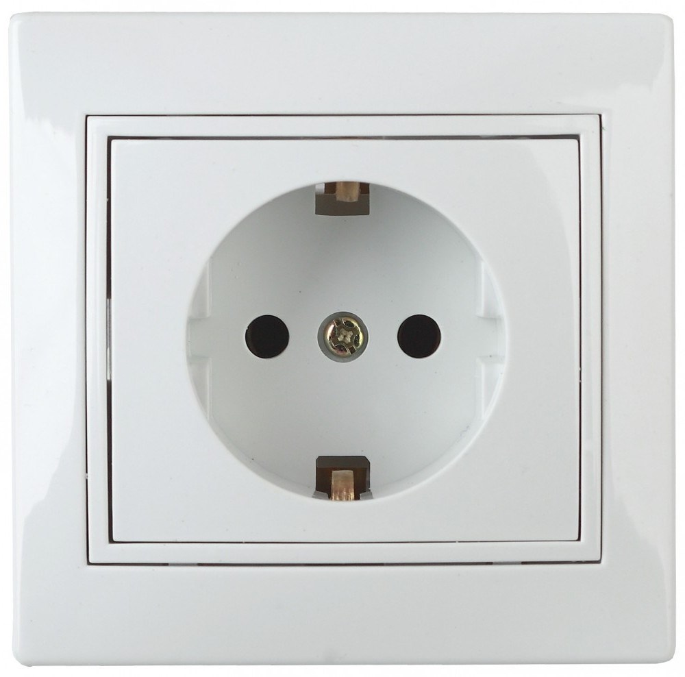 Розетка 2P+E Schuko со шторками, 16А-250В, СУ, б.л., Plano, белый