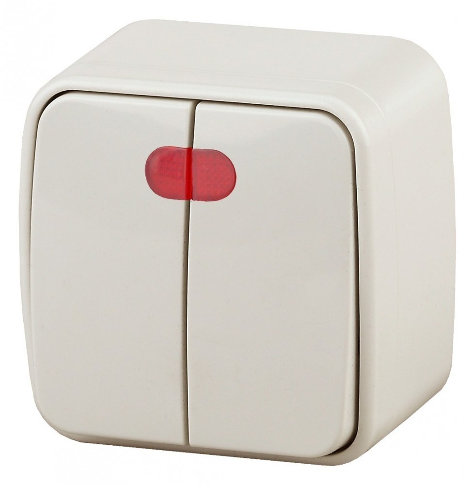 Выключатель2-клавишный с подсветкой серии Intro Polo открытой установки цвет сл.кость 3-105-02. Номинальные характеристики 10А 250В . Выключатель выполнен из качественного термопласта, стали и латуни, оснащён винтовыми зажимами.