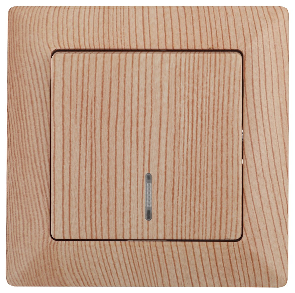 Выключатель Intro Solo 4-102-11 одноклавишный с подсветкой, 10А-250В, IP20, СУ, сосна