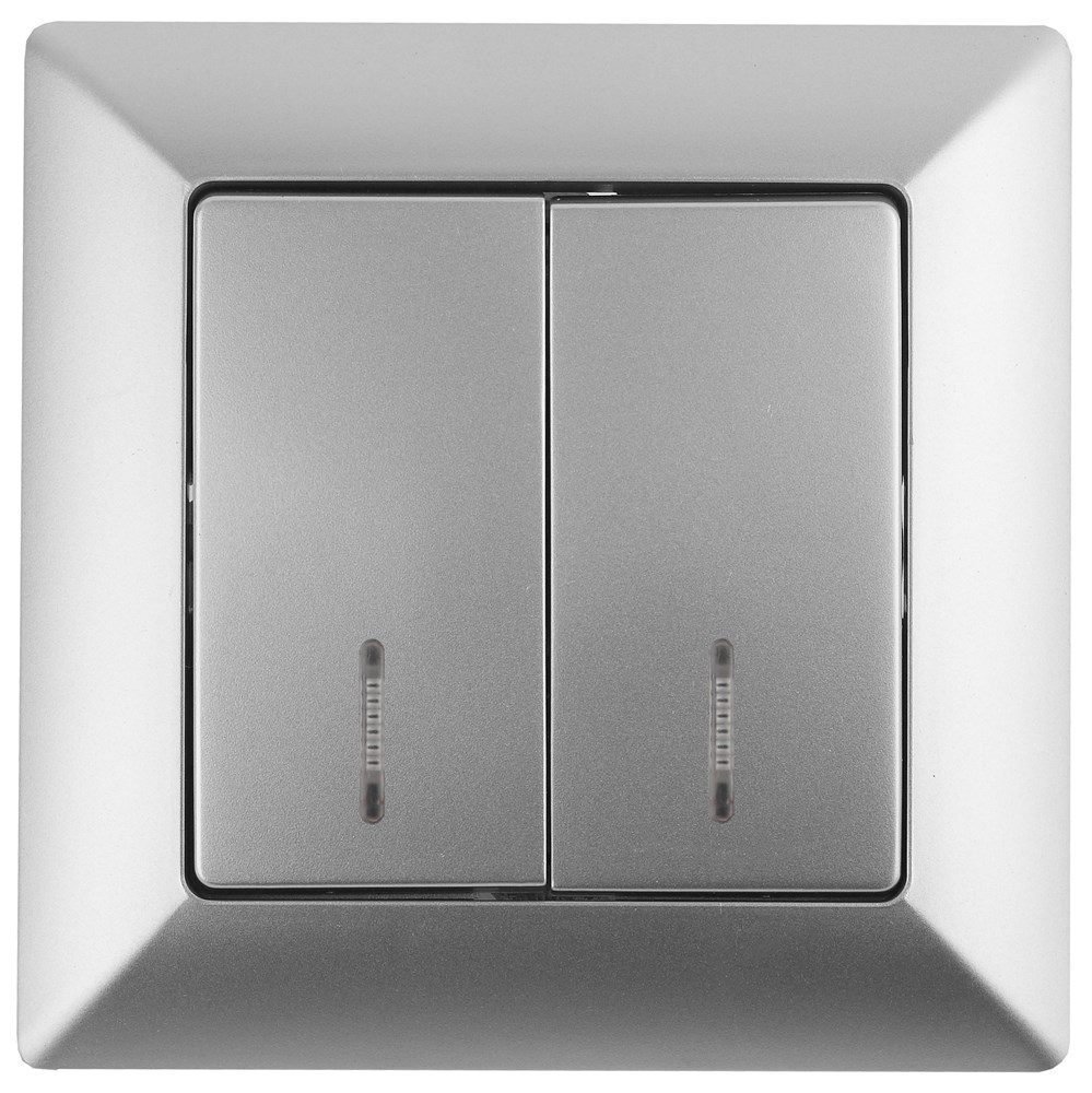 Intro 4-105-03 Выключатель двойной с подсветкой, 10А-250В, СУ, Solo, алюминий (10/200/2000) Б0053595