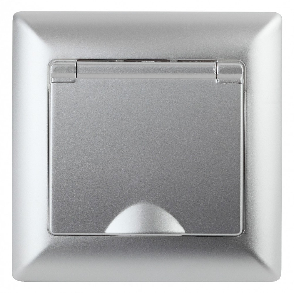 Intro 4-203-03 Розетка 2P+E Schuko с крышкой, 16А-250В, СУ, Solo, алюминий (10/100/2400) Б0043321