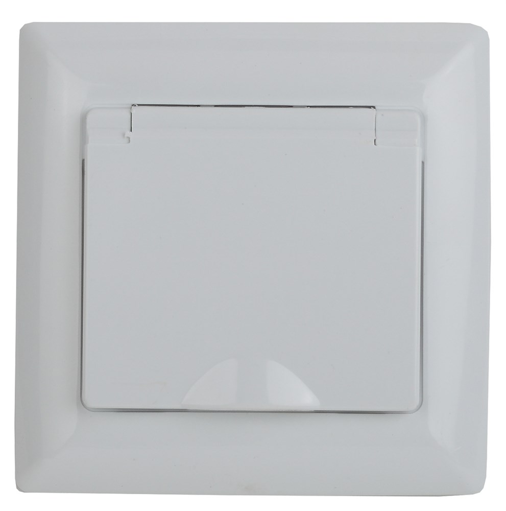 Intro 4-209-01 Розетка 2P+E Schuko с крышкой штор., 16А-250В, СУ, IP44, Solo, белый Б0043361
