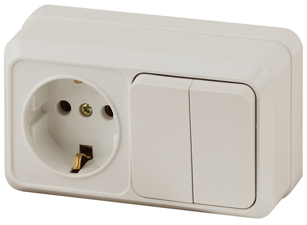 Intro Блок розетка с выключателем Quadro 2-702-02 двойным горизонтальный 10(16)А-250В, IP20, ОУ, слоновая кость Б0053875