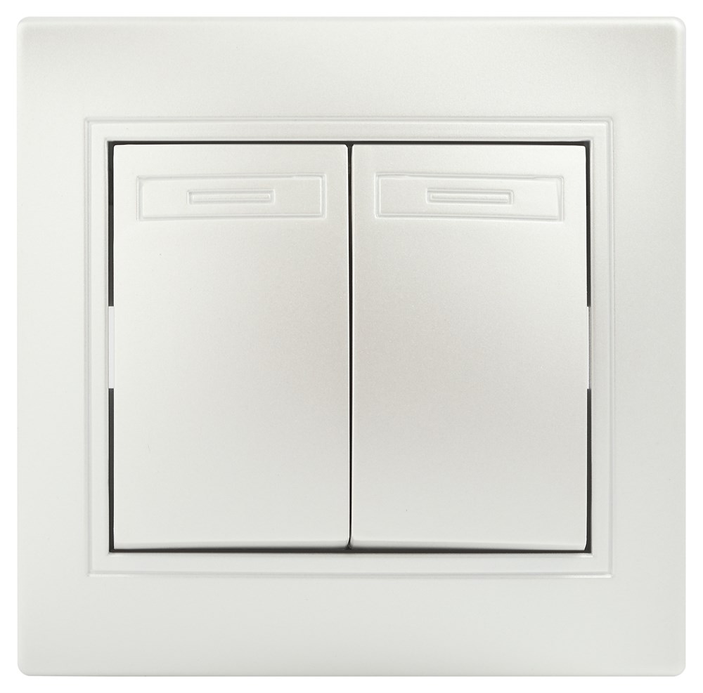 Intro Переключатель Plano 1-107-06 двухклавишный, 10А-250В, IP20, СУ, перламутр Б0053811