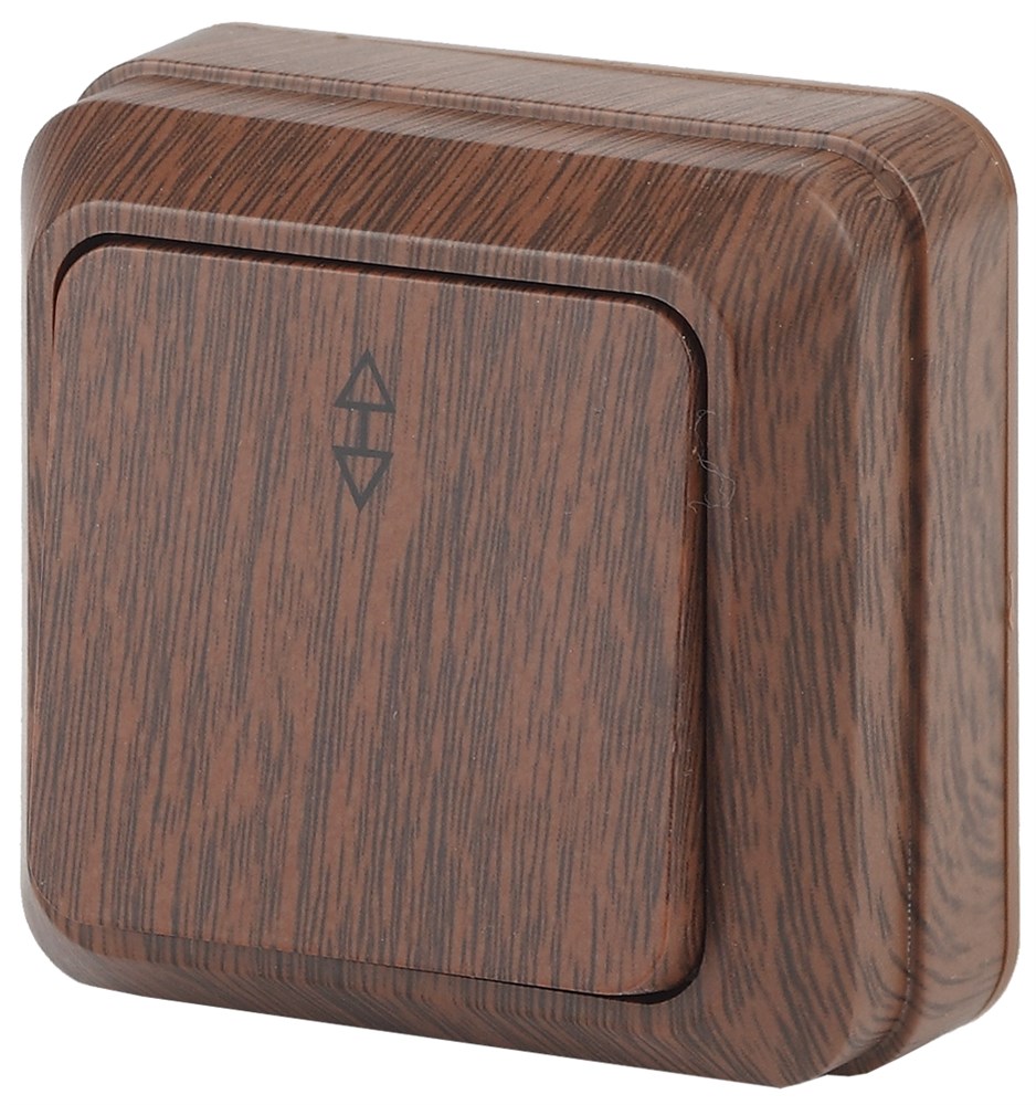 Проходной выключатель (переключатель) 1-клавишный серии Intro Quadro открытой установки цвет венге 2-103-10. Номинальные характеристики 10А 250В . Выключатель выполнен из качественного термопласта, стали и латуни, оснащён винтовыми зажимами.