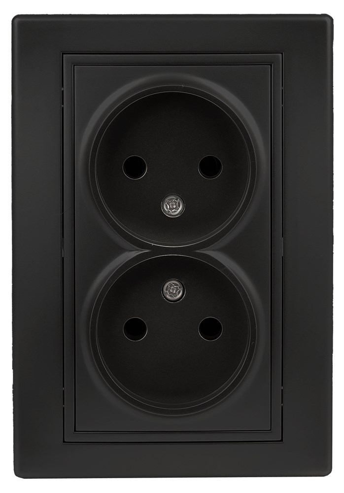 Розетка двойная 2-я серии Intro Plano скрытой установки цвет антрацит 1-204-05. Номинальные характеристики 16А 250В. Розетка выполнена из керамики, укомплектована одноместной рамкой, оснащена винтовыми клеммами. Клеммы с двумя отверстиями позволяют соединять соседние розетки шлейфом. Установка в подрозетник производится как на монтажные лапки, так и на винты.