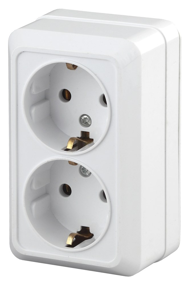 Intro Розетка Quadro 2-204-01 с заземлением двойная 2х2P+E Schuko, 16А-250В, IP20, ОУ, белый Б0053800