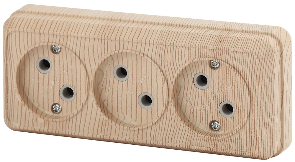 Intro Розетка Quadro 2-205-11 без заземления трехместная 3х2P, 16А-250В, IP20, ОУ, сосна Б0053817