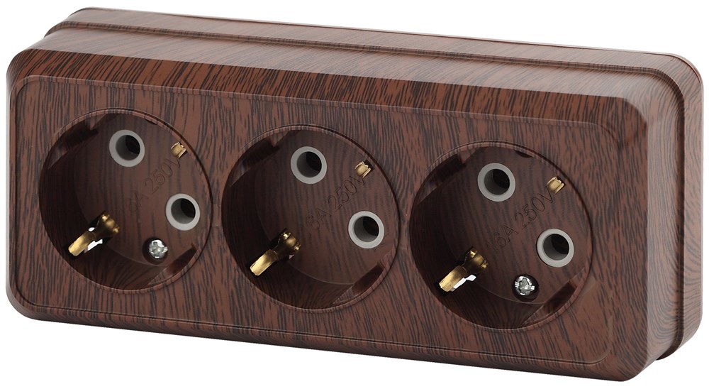 Intro Розетка Quadro 2-206-10 с заземлением трехместная 3х2P+E, 16А-250В, IP20, ОУ, венге Б0053824