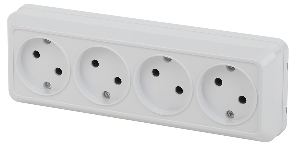 Intro Розетка Quadro 2-207-01 без заземления четырехместная 4х2P, 16А-250В, IP20, ОУ, белый Б0053829