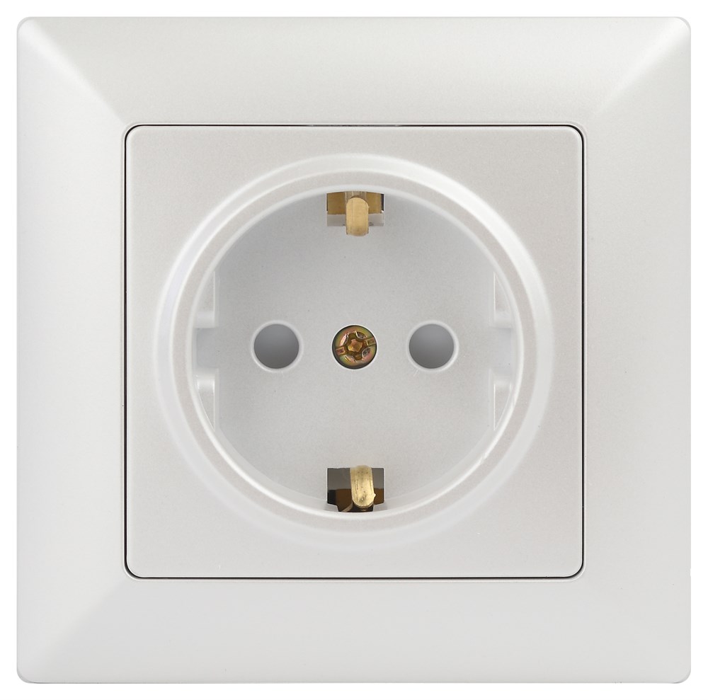 Intro Розетка Solo 4-206-06 с заземлением 2P+E Schuko со шторками, 16А-250В, IP20, СУ, перламутр Б0053686